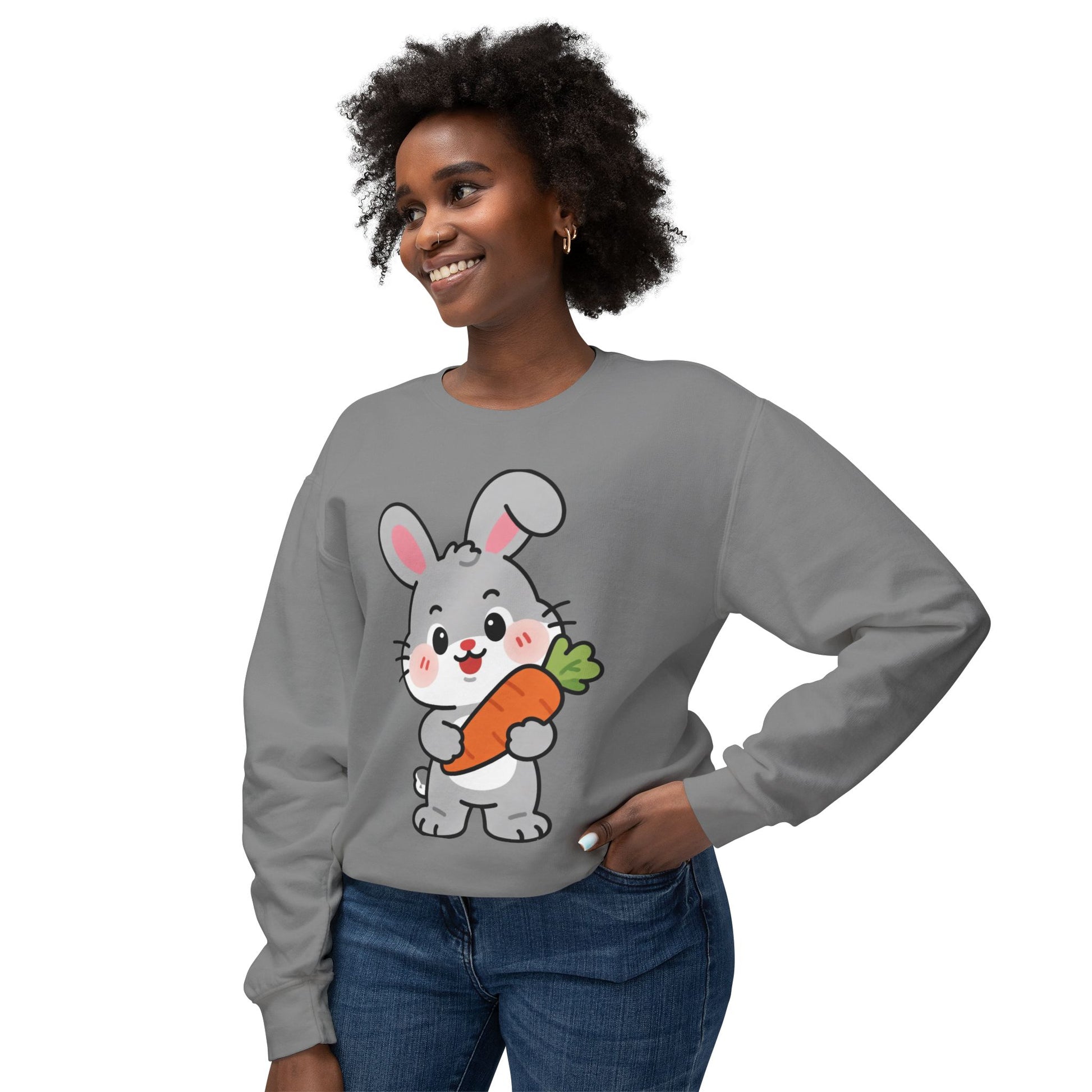 Adorable Bunny Vibes Crewneck – Cute Rabbit & Carrot Design, Aesthetic Cozy Sweatshirt for Her