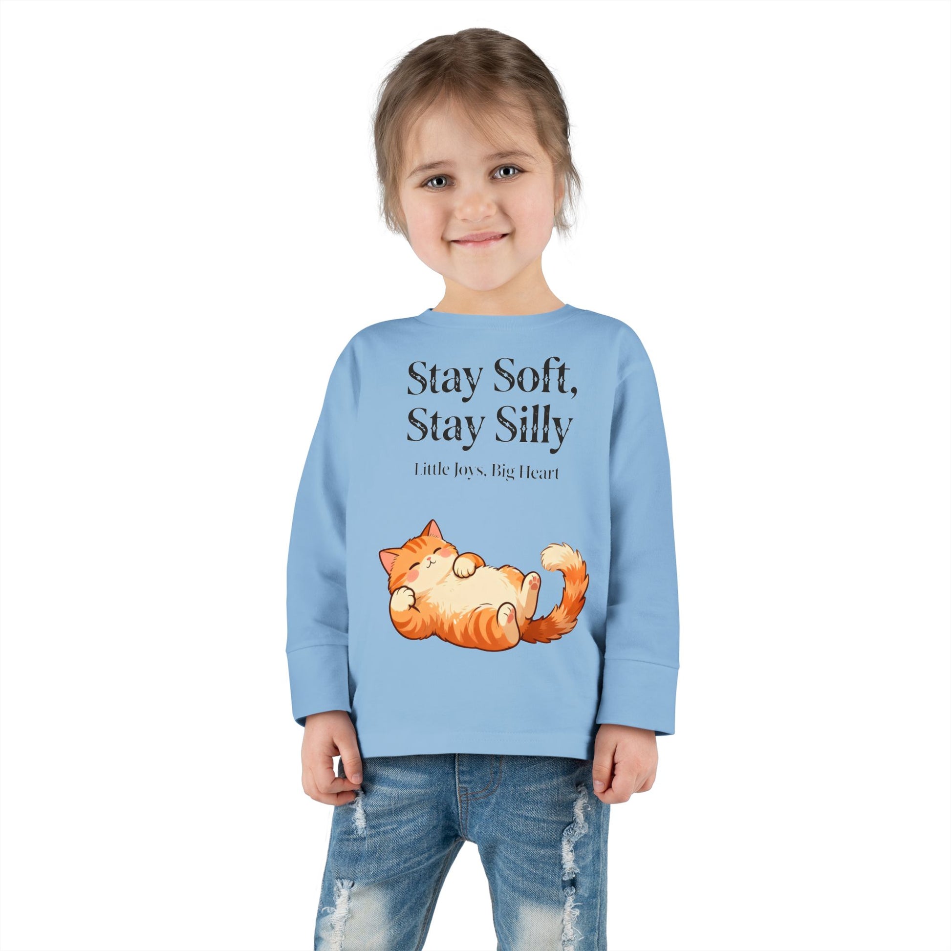 Adorable Sleeping Cat Toddler Long Sleeve – Soft & Playful “Stay Silly” Kids Top