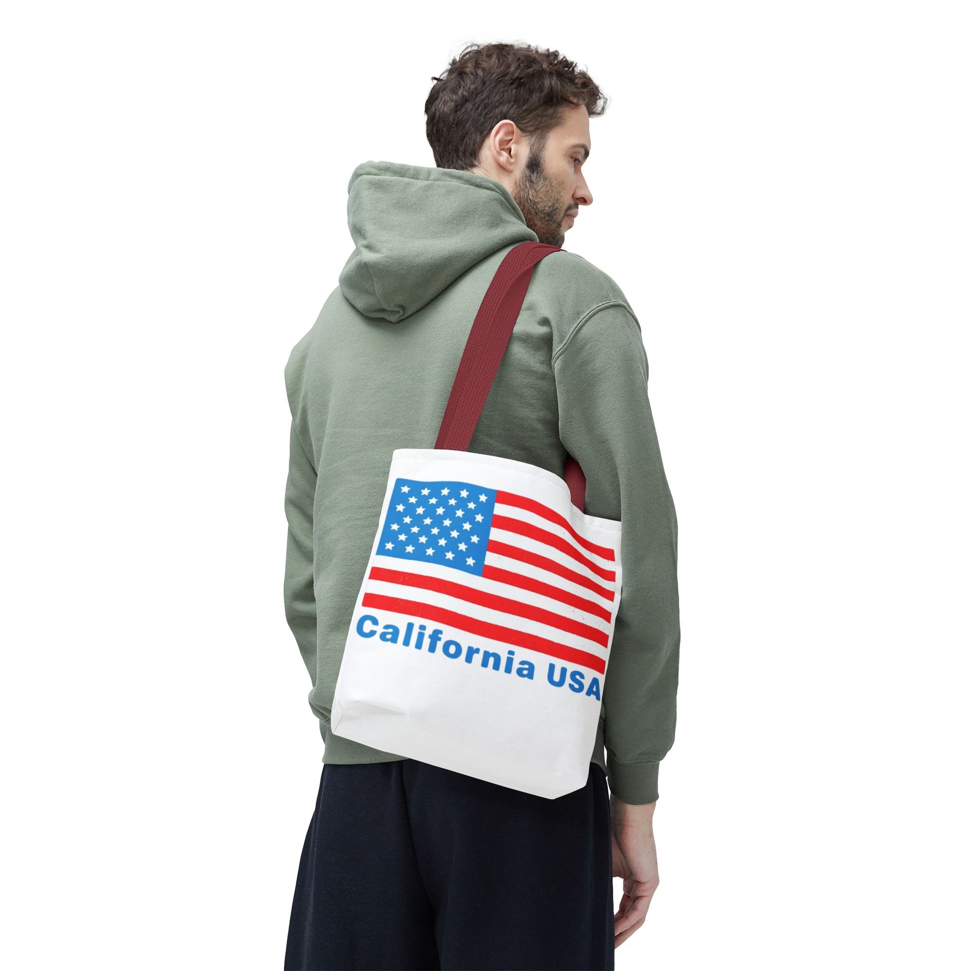 California Bear Pride Tote – Bold USA Flag Canvas Bag for Everyday Carry