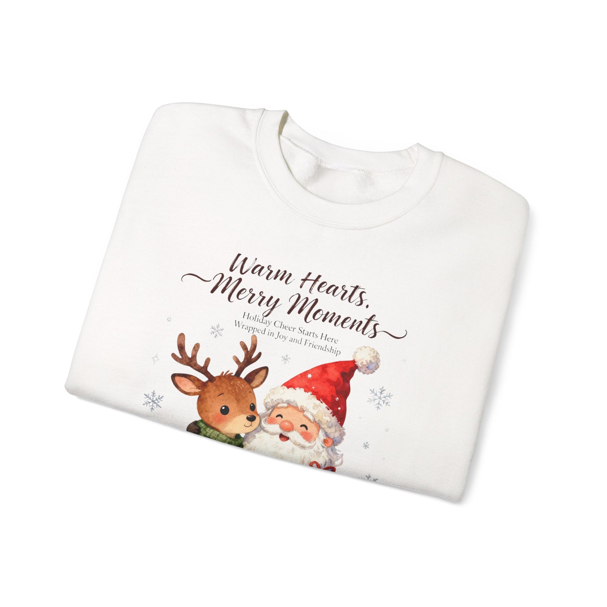 Cozy Christmas Sweatshirt – “Warm Hearts, Merry Moments” Santa & Reindeer Holiday Pullover for Festive Cheer