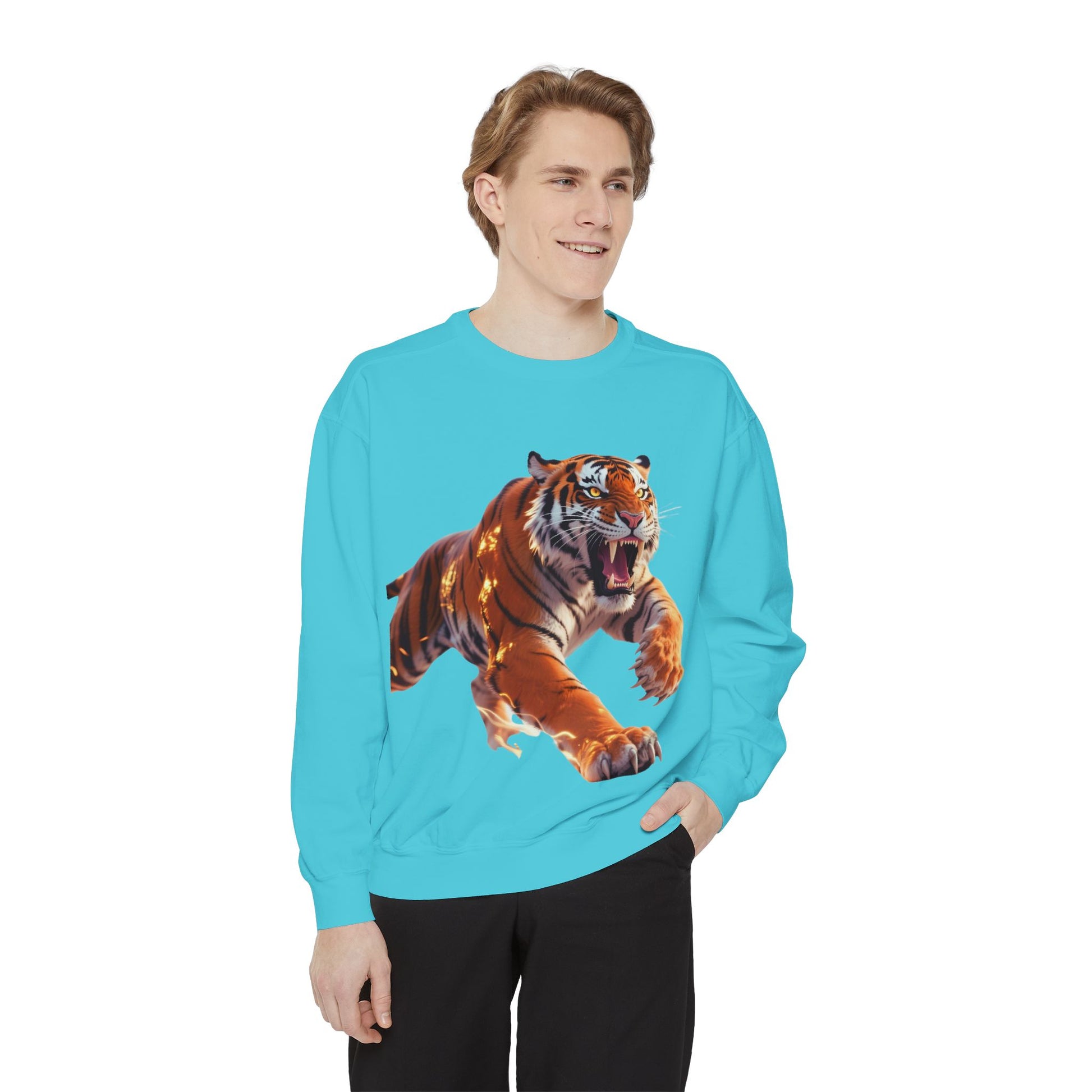 Custom Fierce Tiger Graphic Unisex Garment-Dyed Sweatshirt