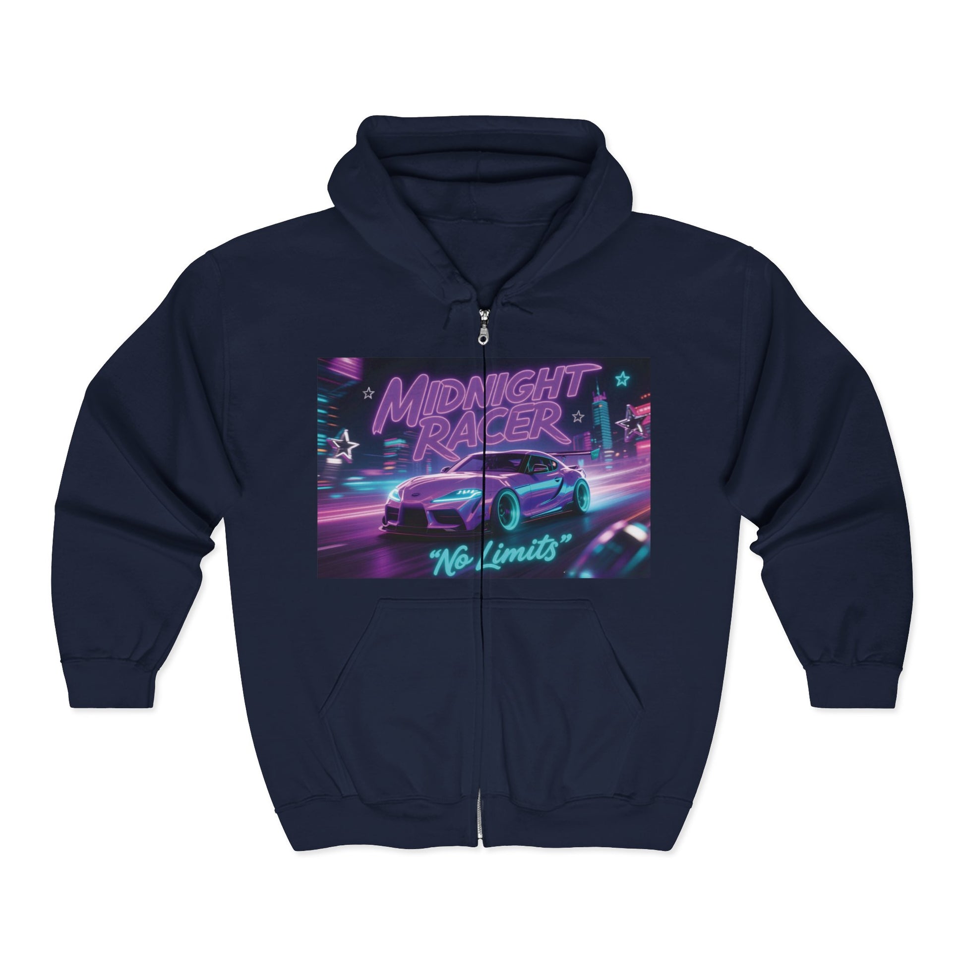Custom Midnight Racer Zip-Up Hoodie – Personalized No Limits Racing Hoodie for Car Enthusiasts | Street Racing Zip Jacket