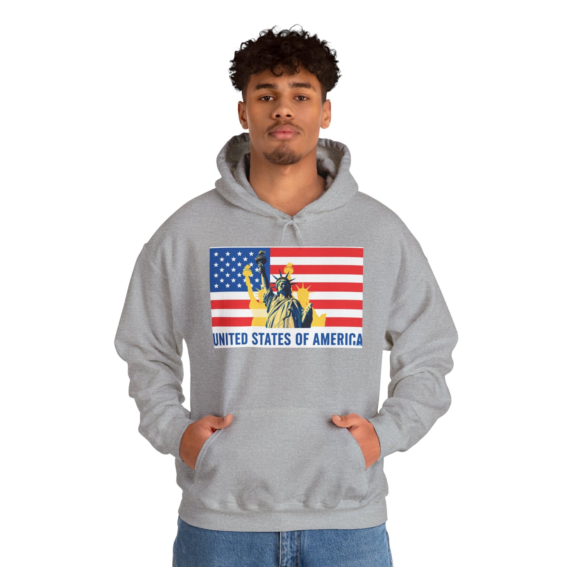 Show off your freedom and American pride with this Custom Patriotic USA Flag Hoodie – Unisex Heavy Blend™ Sweatshirt. Designed with a bold illustration of the Statue of Liberty combined with the American flag, this hoodie brings together comfort, style, and a meaningful message. Soft, warm, and durable — it’s the perfect everyday hoodie for those who love the United States and its values.