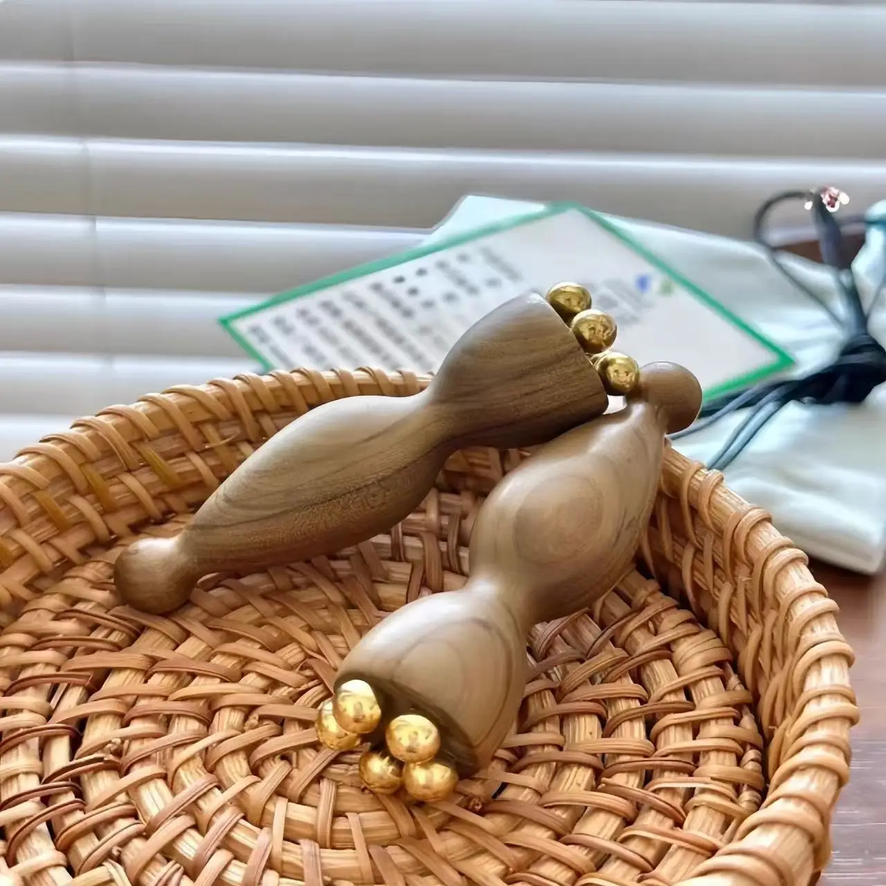 1. Designed with natural wood and brass beads, the small lotus pod facial massager blends traditional aesthetics with modern beauty concepts, offering a gentle touch and enhancing your skincare ritual.
