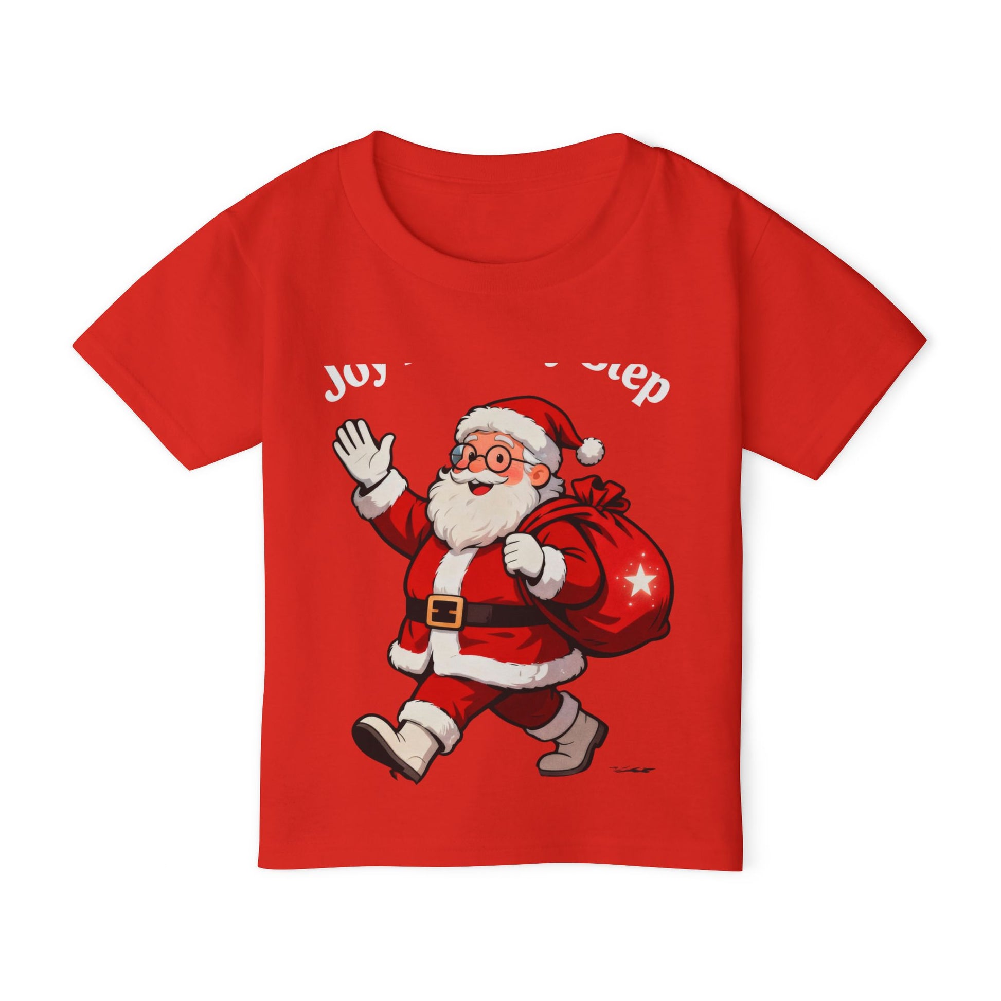 Across the chest, a friendly, vintage-style Santa strides forward with a packed gift sack and a jolly wave-an illustration that sparks giggles, curiosity, and endless “Look! Santa!” moments wherever your child goes. The medium-weight cotton feels gentle on small skin, sturdy enough for active play, and cozy enough for cuddly afternoons by the tree.