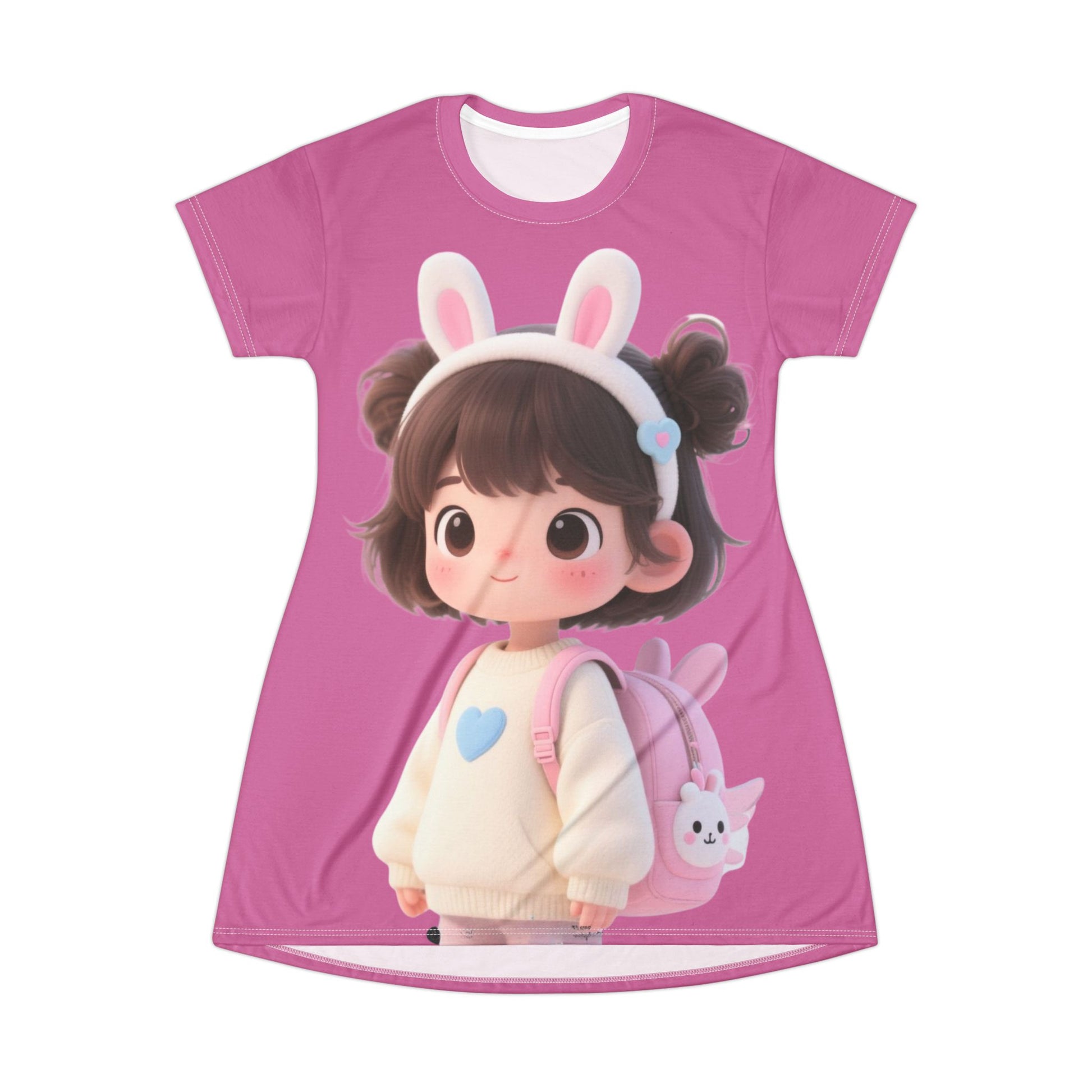 Pink Bunny Character T-Shirt Dress – Soft, Playful AOP Style for Cute Everyday Wear