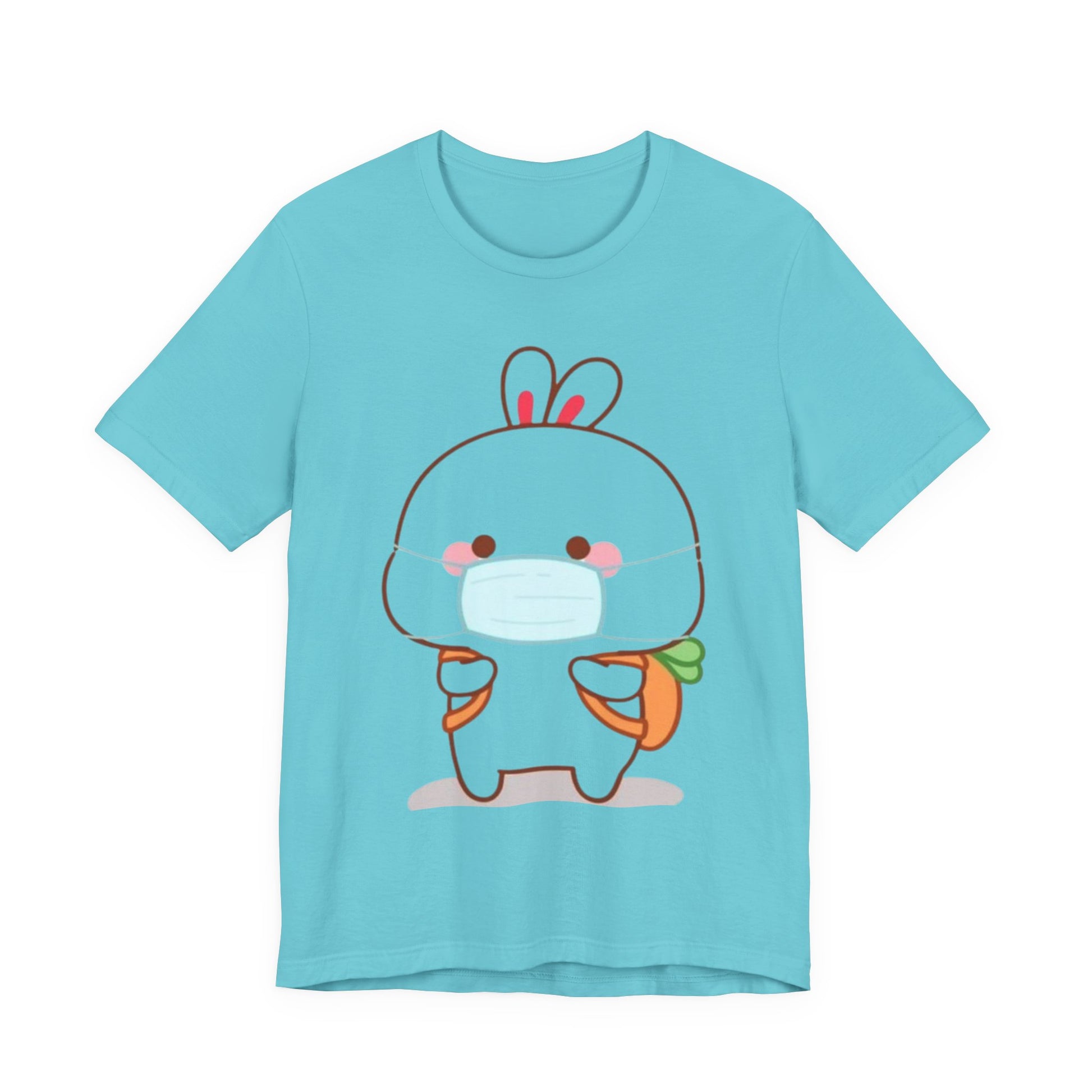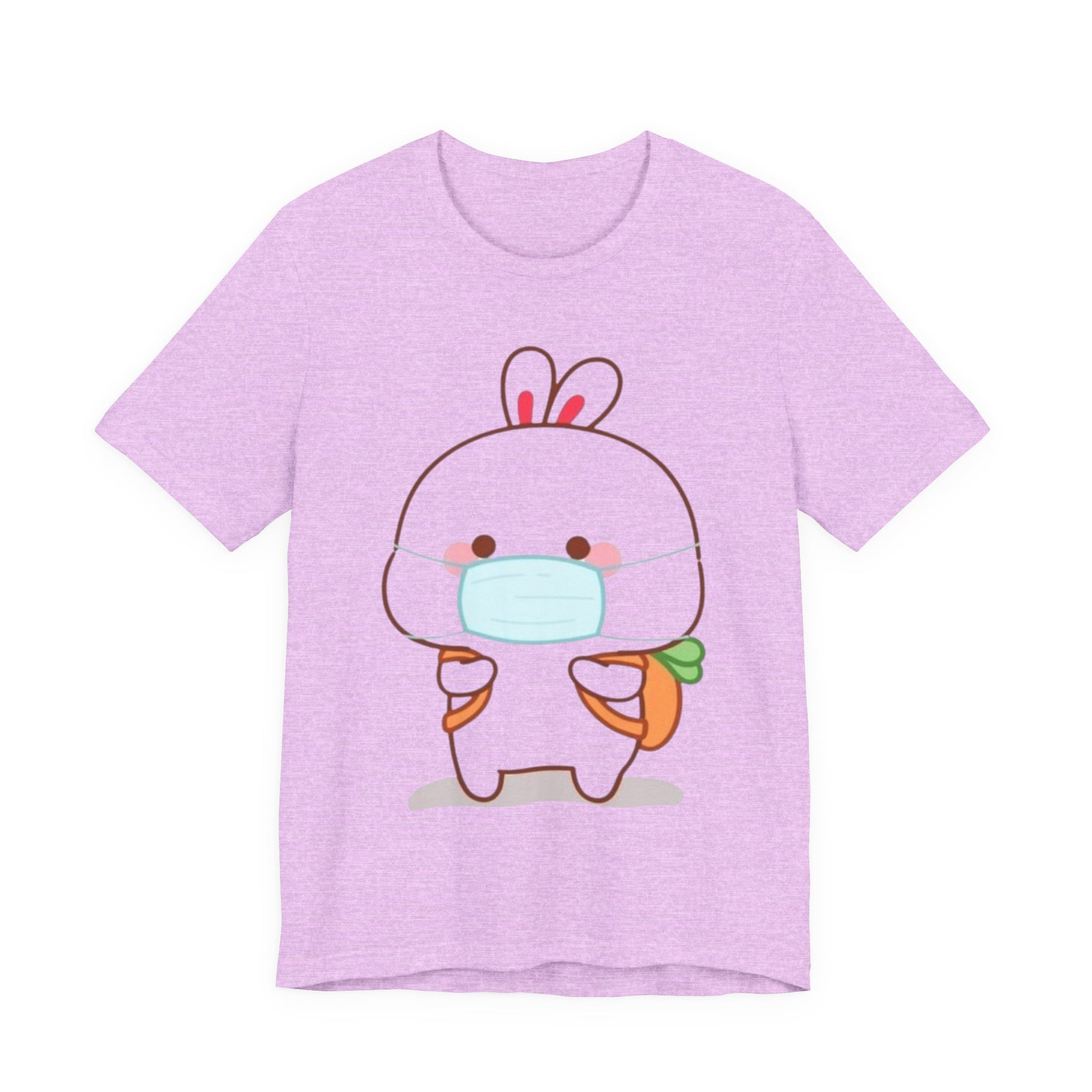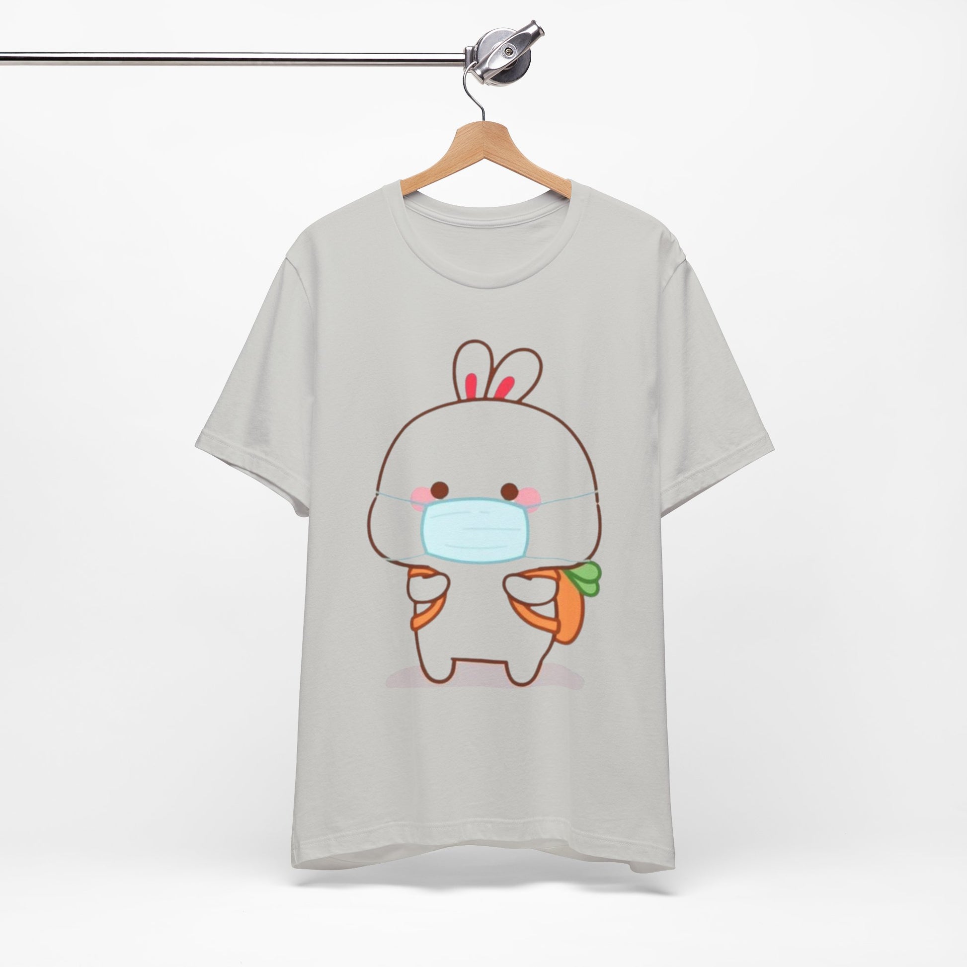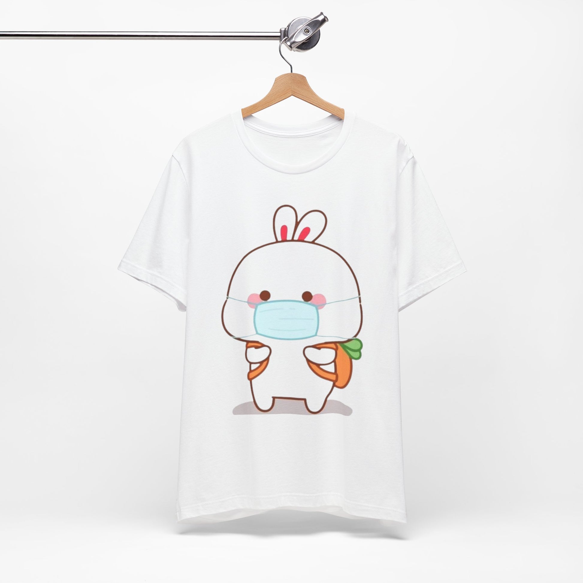 Playful Bunny in Mask T-Shirt – Adorable Carrot-Loving Rabbit Cartoon Design