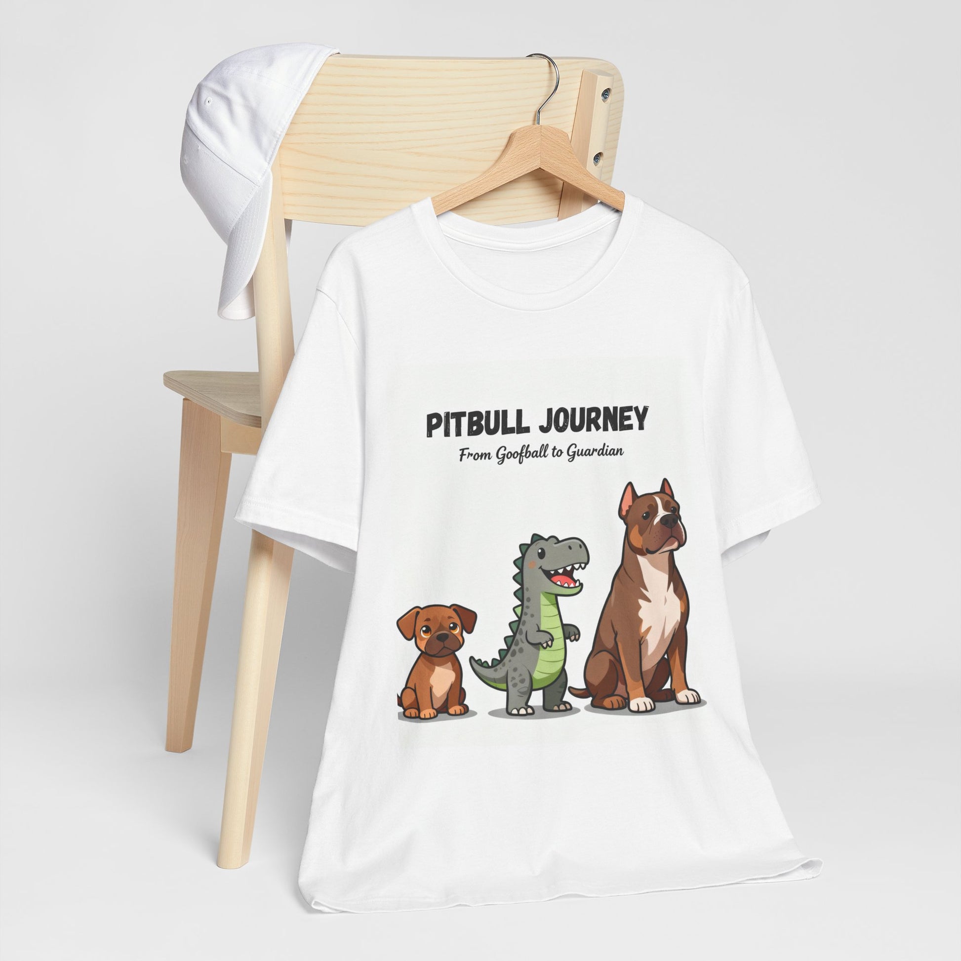 This Pitbull Journey Tee captures the heart of companionship and the joy of growing together. The artwork tells a sweet, familiar tale: a tiny rescued pup full of wonder, a silly dinosaur toy that represents play and chaos, and a proud adult pitbull who’s found both strength and love along the way. Beneath the design, the words “From Grateful to Guardian” remind us that growth is built on trust, loyalty, and the little moments we share.